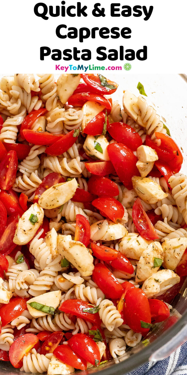 This is the best Caprese Pasta Salad! If you love spice, try adding a little bit of crushed red pepper flakes.